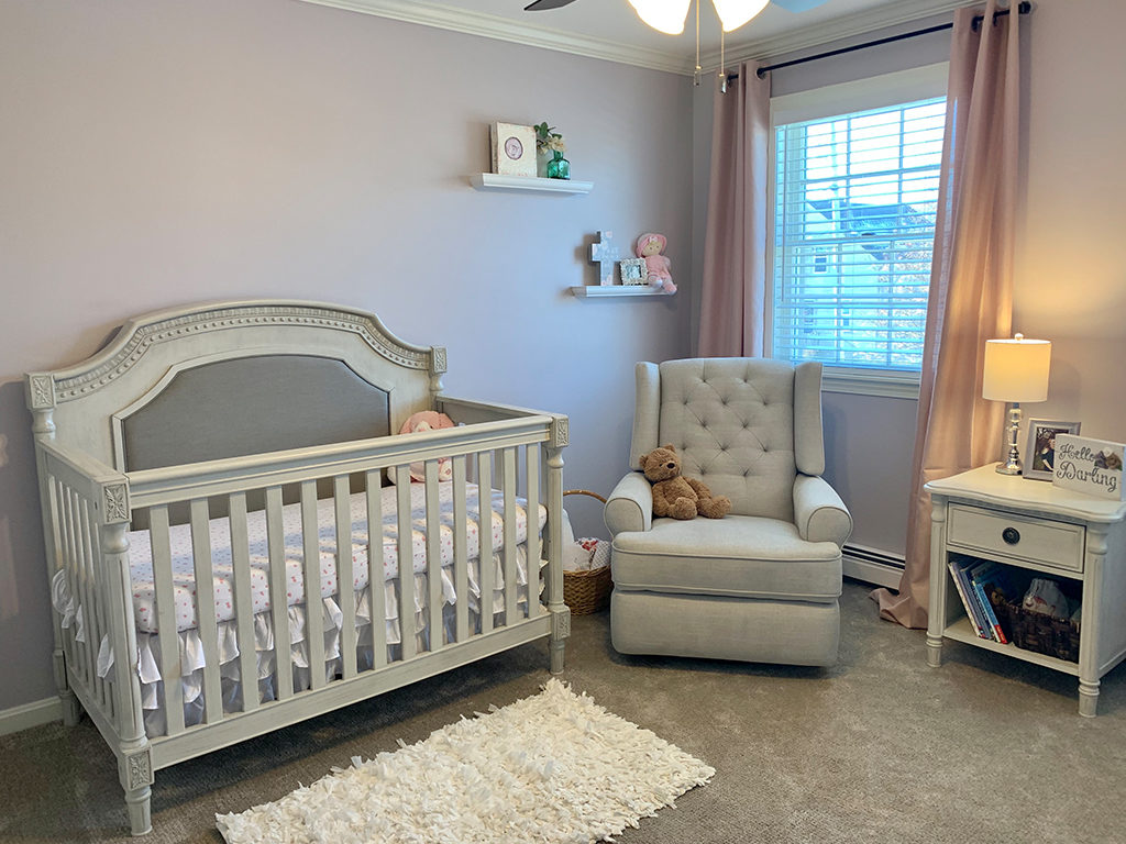 When we bought our house, my design theme has always been ‘light, bright and cheerful’. This is definitely true in the nursery as well. I kept coming back to the word ‘serene’ and knew I didn’t want our baby’s room to be too harsh. My signature color is purple, so you definitely see a lot of that here, but I think it was done tastefully!