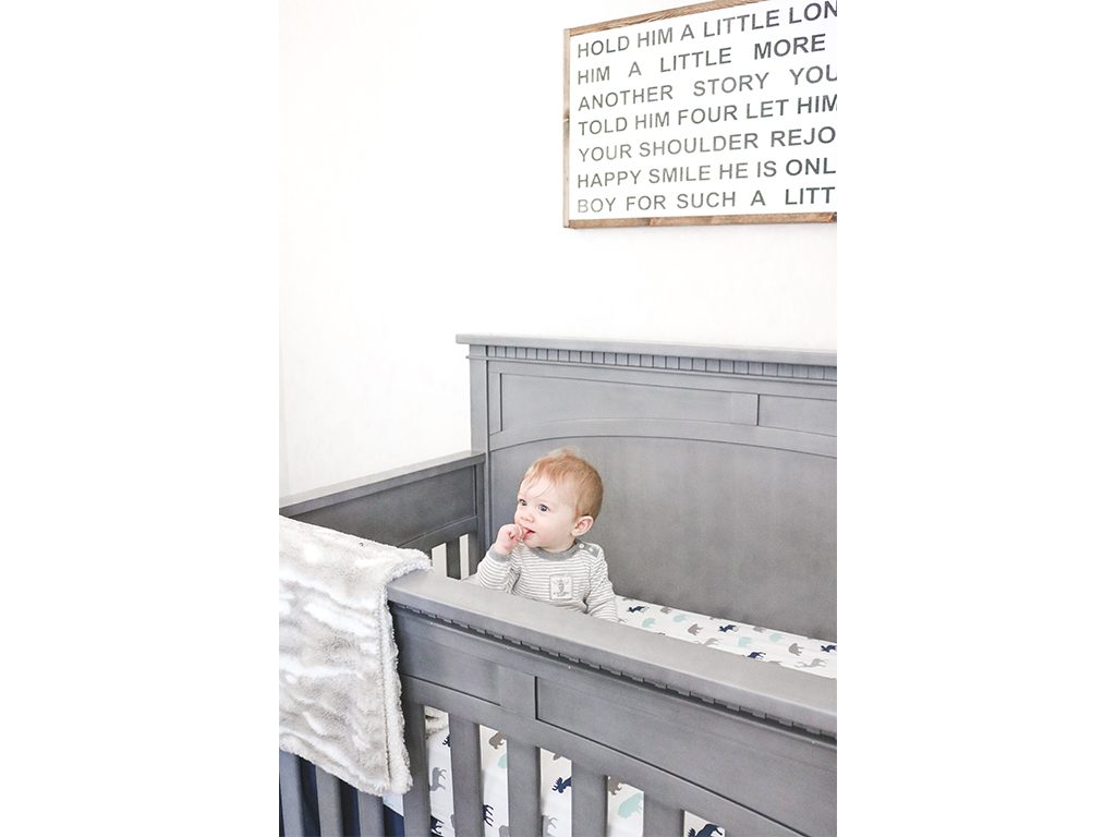 My favorite piece in the nursery is the sign hanging above his crib. It is a reminder every day to slow down and enjoy every moment with my rapidly growing baby boy.