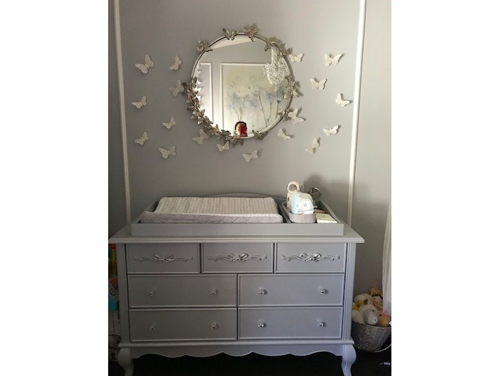 I bought these beautiful Evolur pieces because they were very feminine and sweet for our first baby, which is a girl. I choose Evolur because the set is versatile, durable and the crib is convertible. We love the idea that it becomes a toddler bed, day bed and a regular bed. We choose the color grey pearl because it is in style, hence we also paint the walls with a light grey color.