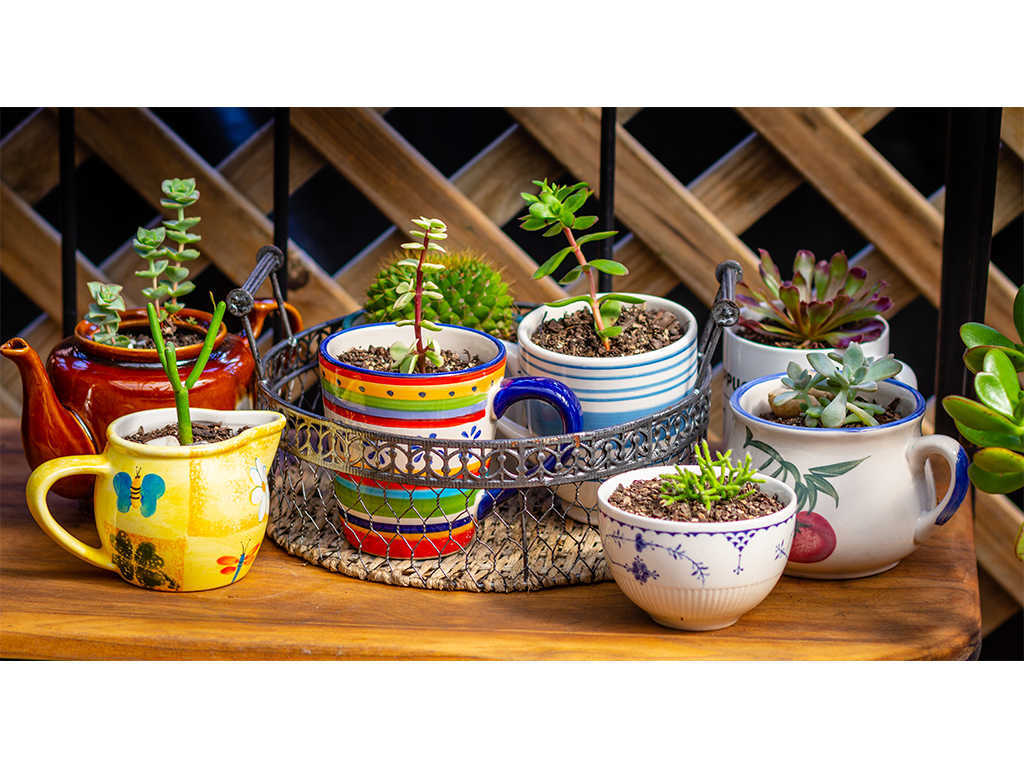If you don’t want to purchase expensive planters, you can also plant the cactuses in your coffee mugs or other containers from your everyday kitchen range. Depending upon the color palette you’ve planned, choose either colorful pots and planters or plain white ones. You can either opt for multiple pots for different cactuses or a single, flat-top planter tray that can accommodate five to six mini cacti in it.