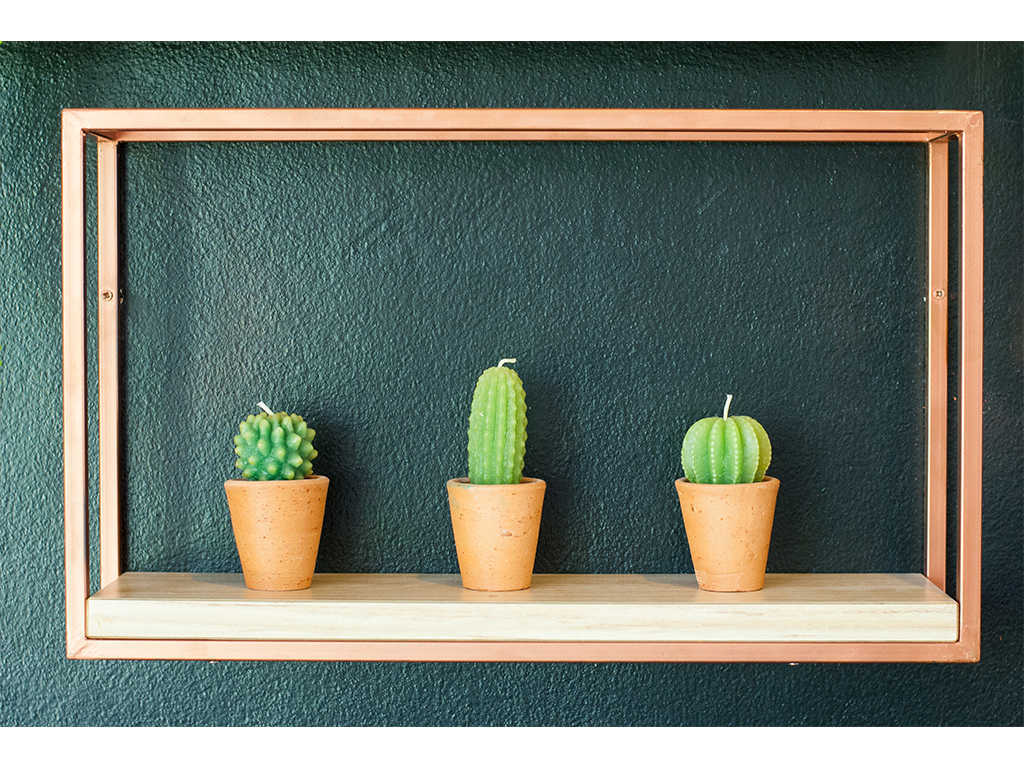 To further empower your theme, opt for choosing some cactus inspired artwork and bring dead corners to life. Go for a unique oversized painting or curate a gallery wall to bring in an array of ornate cactus variations in the room.