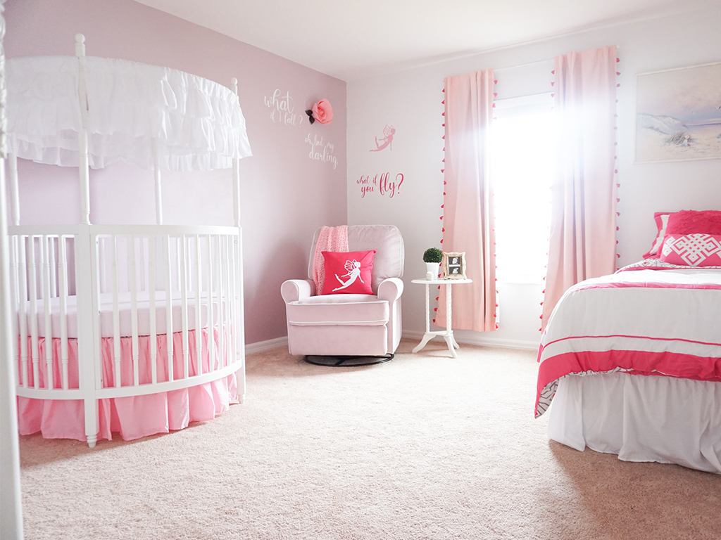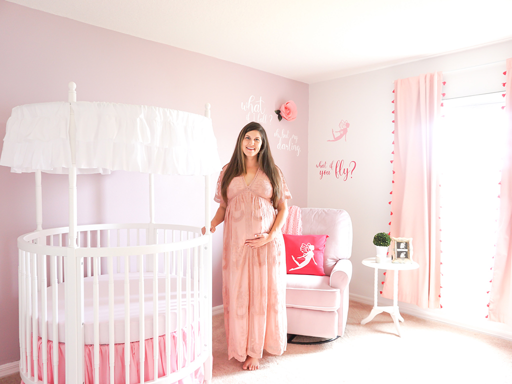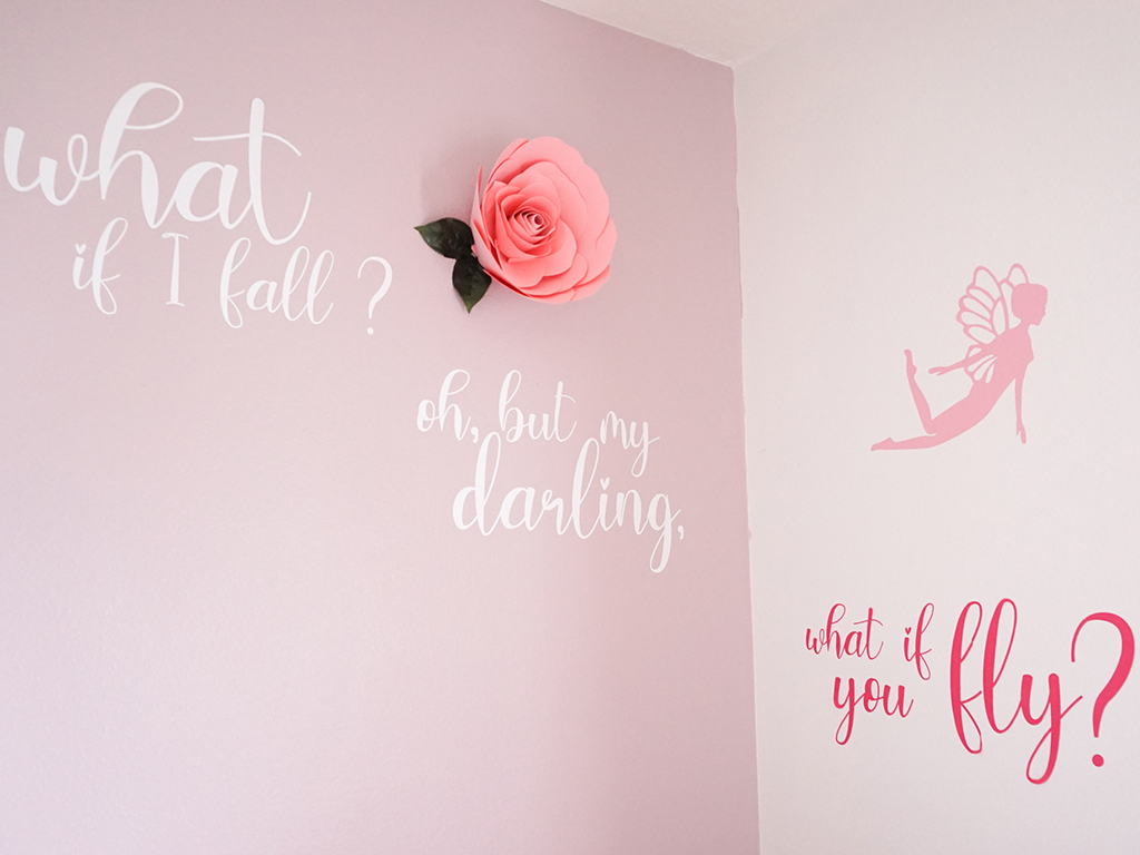 I started by finding a quote that represents what I want my daughter to grow up believing. “What if I fall? Oh, but my darling, what if you fly?” It is important to me for my little girl to have a childhood full of magic, wonder, and pixie dust, and this quote embodied that dream. Given the nature of the quote, I was drawn towards fairies for the rest of the room design. I wanted her nursery to feel like a magical place— somewhere that anything was possible. Once I found her crib, I fell in love. It set the tone for the spellbinding fairy tale classic vibe I was trying to achieve.