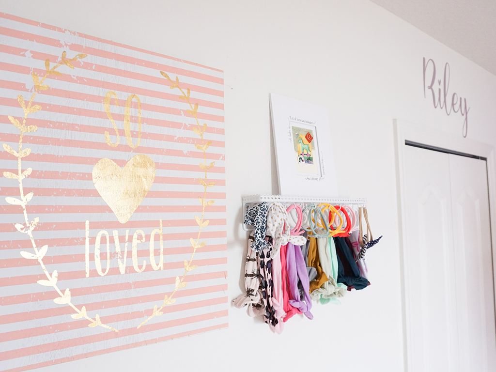 Riley’s nursery was previously used as our guest room. My mom stays over to help out a lot, so I wanted to make sure we still had a comfortable spot for her when she stays with us. It was a challenge to achieve the enchantment I wanted for the nursery, while maintaining a design that makes guests feel comfortable.