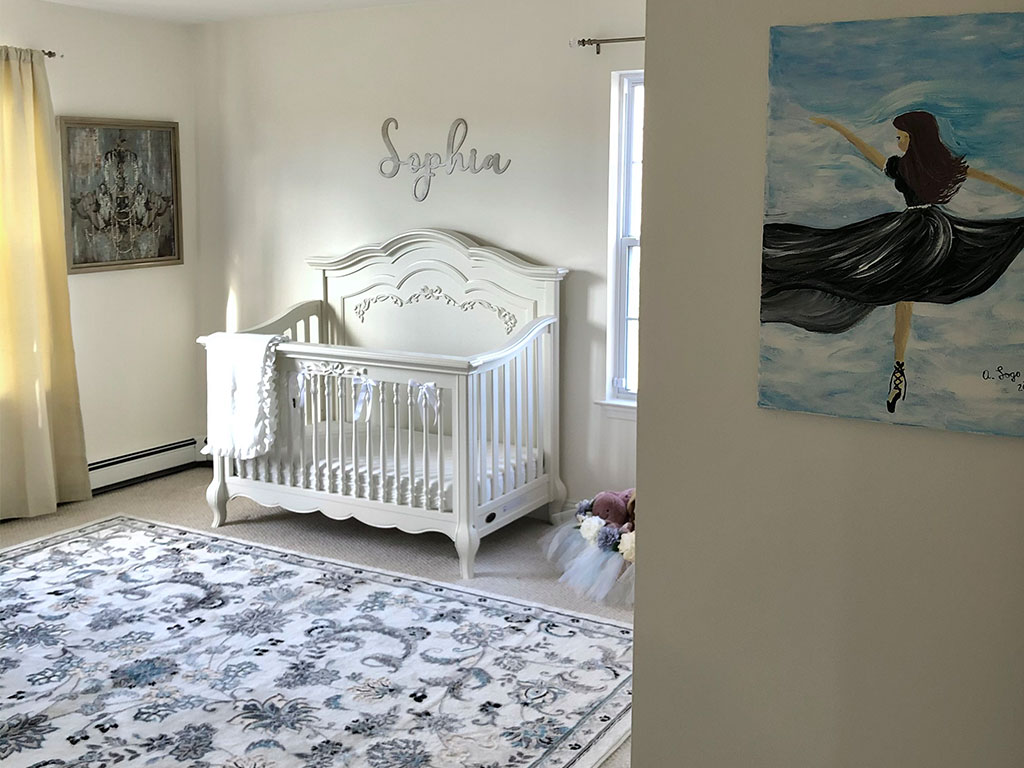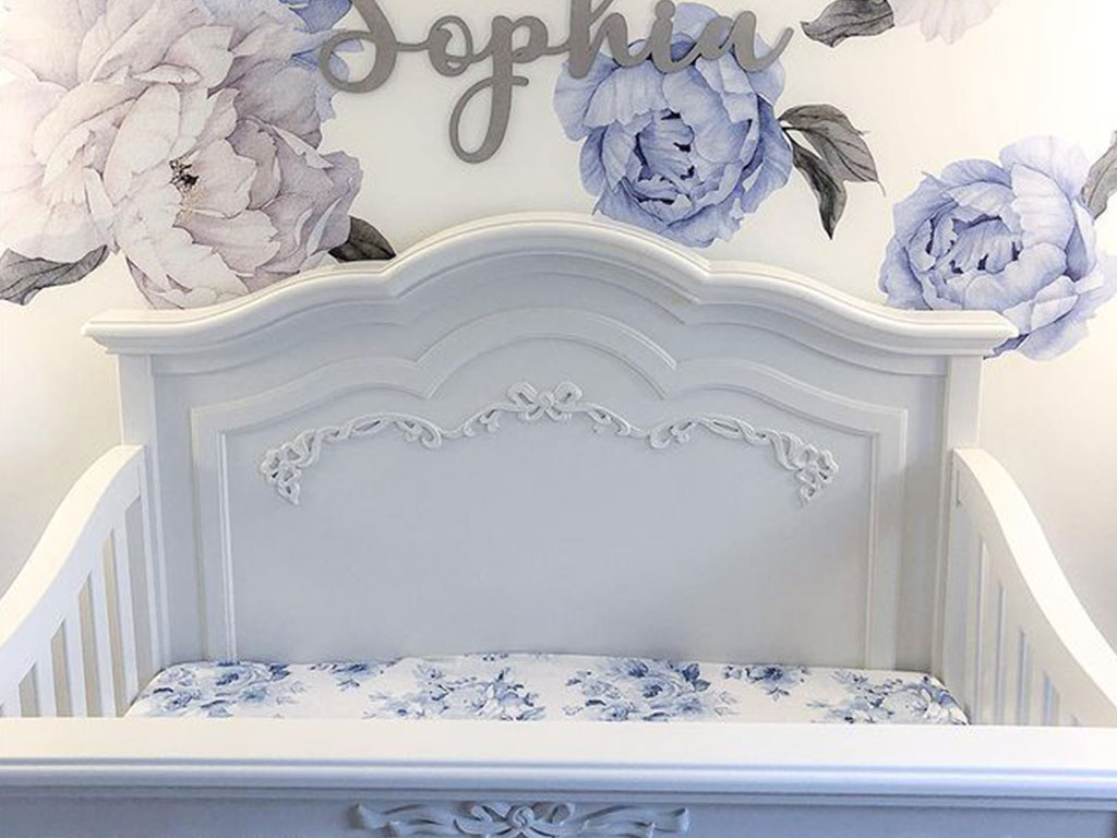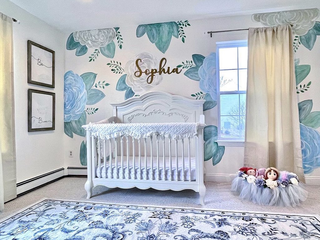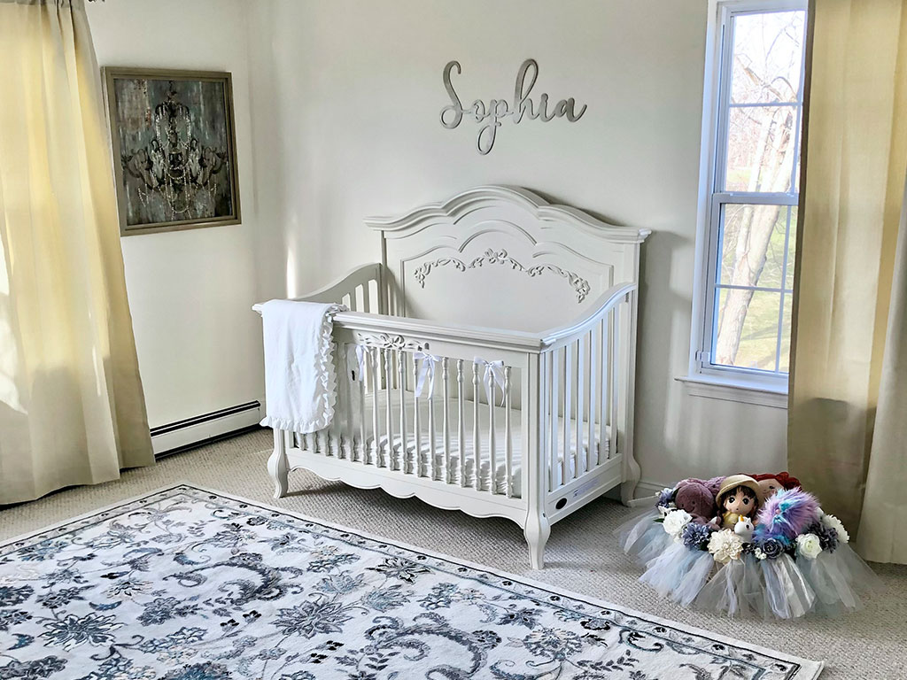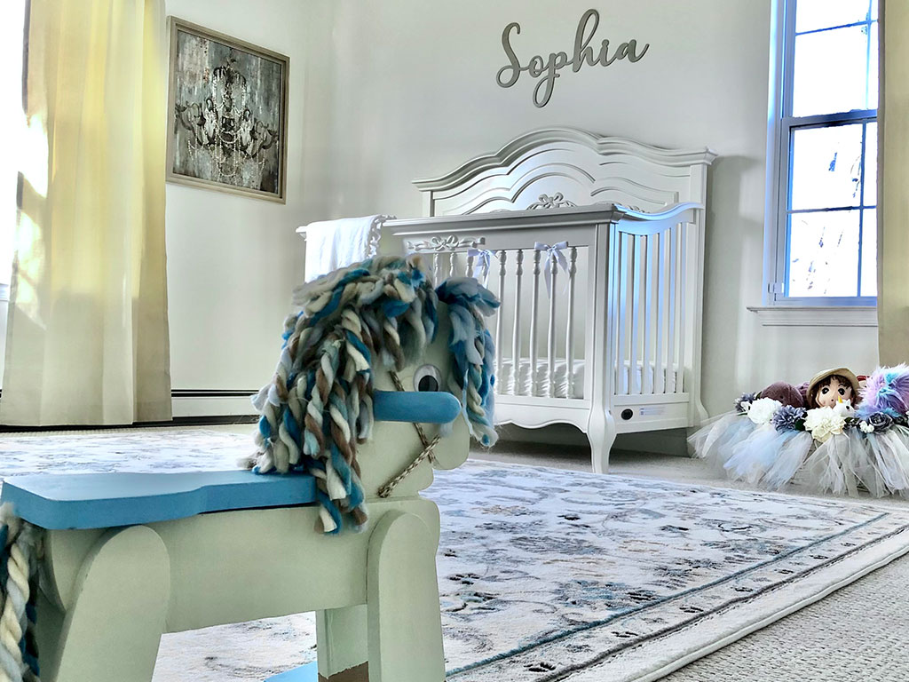 I was inspired by the color blue. I didn’t want to do the traditional pink or beige. I wanted Sophia’s room to be unique.