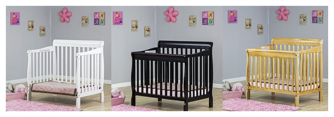 The Dream On Me Aden Convertible 4 in 1 Mini crib is a beautifully designed crib that gracefully matures with your child from infancy, through childhood to adulthood. With its robust good looks and solid frame this crib features a stationary( non drop side) rail design which provides the utmost in product safety.