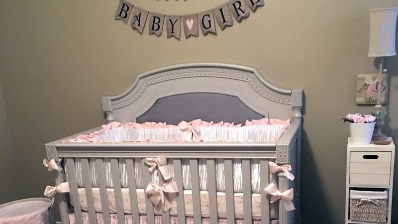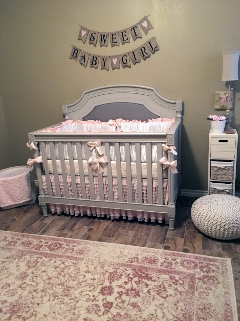 Rose lamp on dresser (I put lamp in a planter from Walmart), rug, closet hangers, drawer organizers, crib bumper with bows– Amazon.com