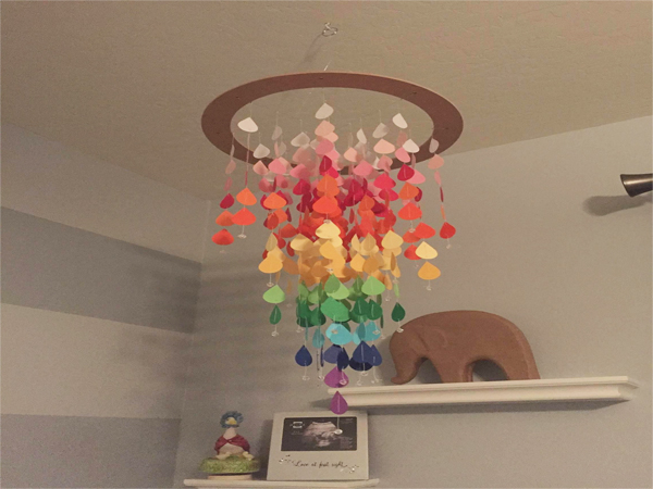 With my first pregnancy, I was drawn to teal and grey with elephants. It seemed peaceful, happy and gender neutral (we didn’t want to find out the gender). We ended up miscarrying that baby, along with 3 other pregnancies. At some point in time, I had shared on social media what my vision was for our first nursery. People remembered that and when I became pregnant with my current baby, we began receiving gifts in teal and grey with an elephant theme. With the first pregnancy, there wasn’t a whole lot of meaning behind it. Now, it carries a lot with it. It honors the pregnancies we have lost while celebrating the life we will be welcoming to this world in a few weeks. I have also always been drawn to bright, cheerful colors. Color makes me happy. With all of our losses, I have struggled finding happiness and joy and make an effort to wear bright, cheerful colors. Because this baby is our rainbow baby, which is a term for a baby born after a loss, I wanted to add a rainbow theme in as well. It may not make a whole lot of sense from the outside looking in, but to us, it makes perfect sense and we just love it.