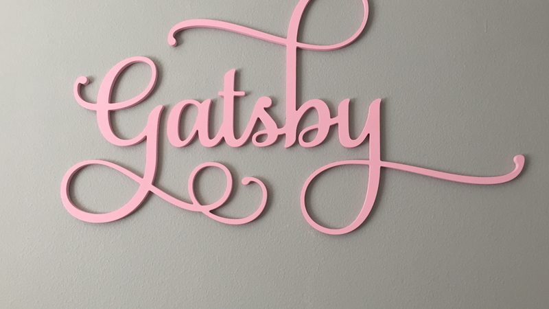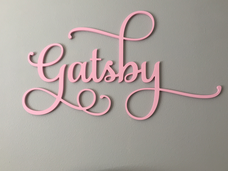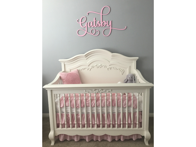 Gatsby’s name over the crib is from Etsy shop: LesBellesMonogram